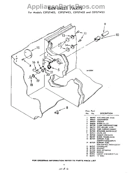 Parts for Whirlpool CEFS7AS3: 06 - Bin Inlet Parts