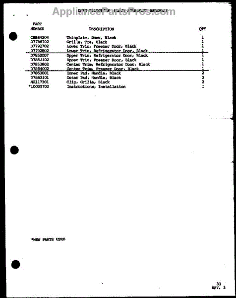 Parts for Amana SXDE25JP-P7870129W: Black Accessory Assembly (Bhk2 / P1100602w) Parts