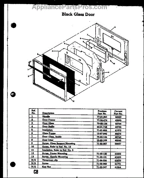 Parts for Caloric EJR304-2F/N: Black Glass Door Parts