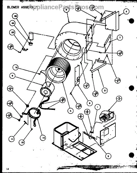 Parts for Amana PHK125/P9829701C: Blower Assembly (Spco24001a / P9999101c) (Spco30001a / P9999102c) (Spco36001a / P9999103c) (Spco36003a / P9999104c) Parts