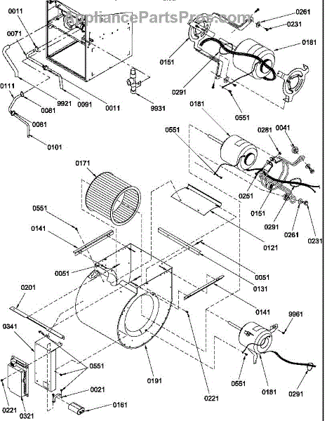 Parts for Amana GUC115X50B/P1212906F: Blower Assembly And Drain Tubes Parts