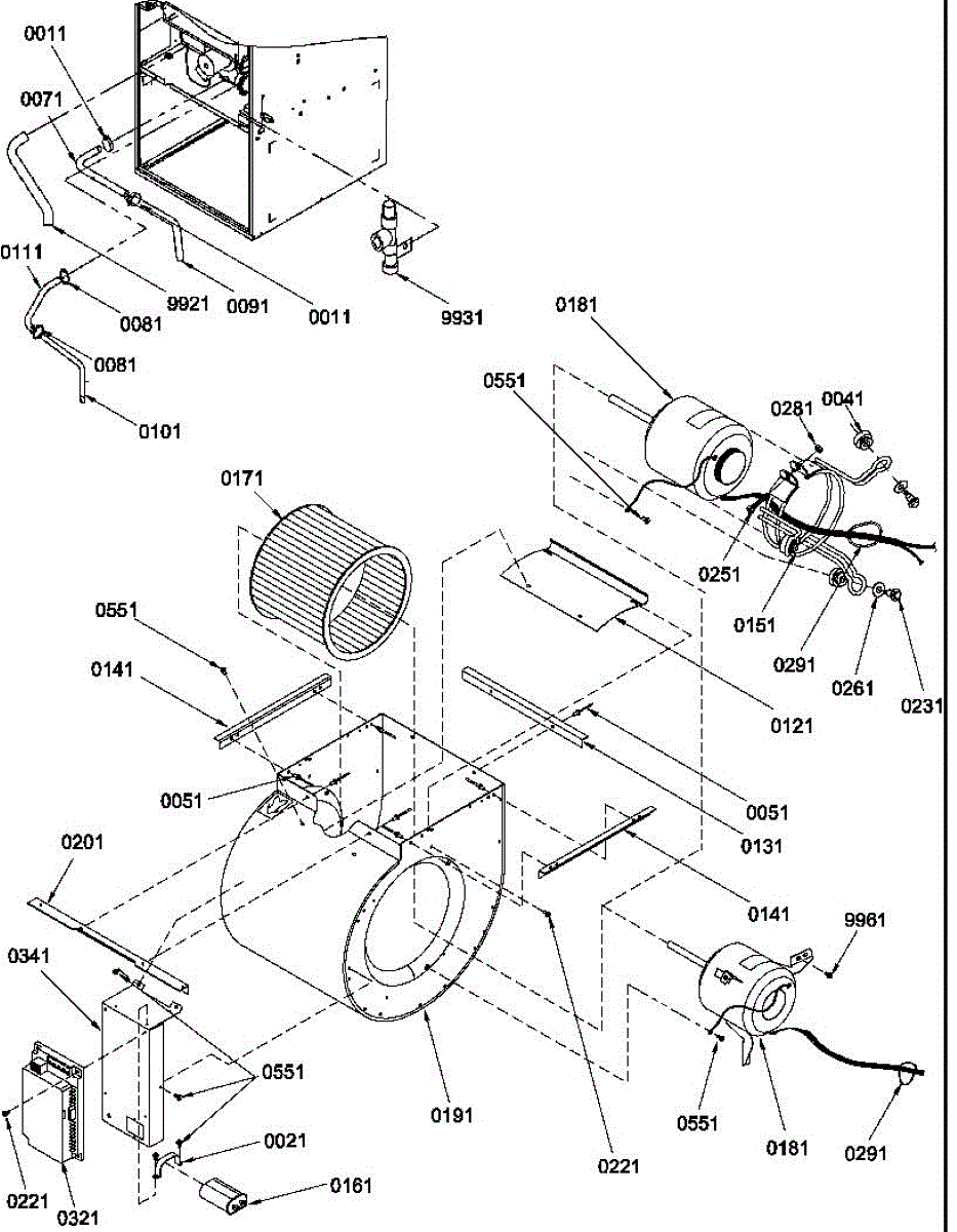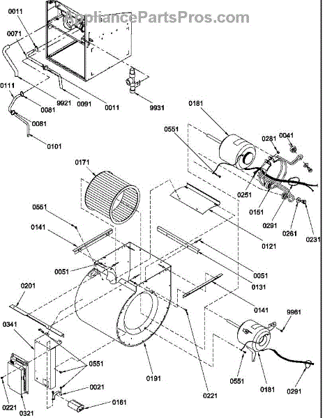 Parts for Amana GUD115X50B/P1213106F: Blower Assembly And Drain Tubes Parts