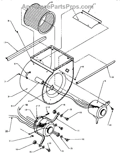 Parts for Amana BHA42TB002A/P1188105C: Blower Assembly Parts