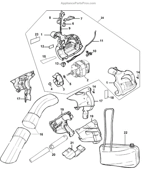 Parts for Black & Decker BV2500 TYPE 5: Blower Assy Parts
