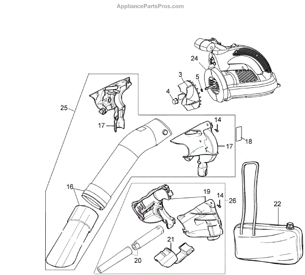 Parts for Black & Decker BV2500 TYPE 8: Blower Assy Parts