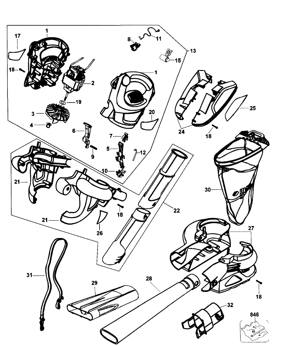 Parts for Black & Decker BV4000 TYPE 1: Blower Assy Parts