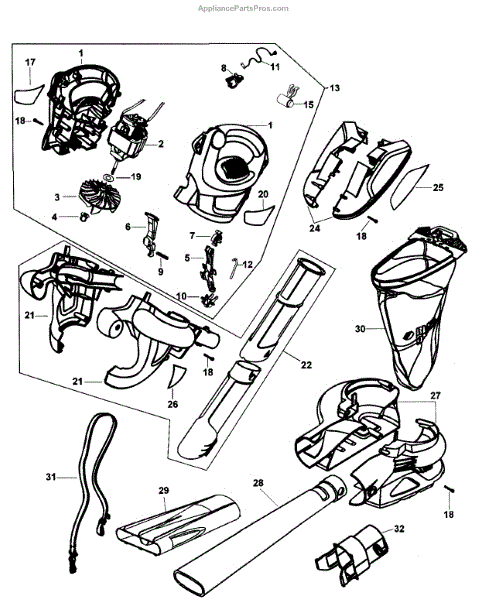 Parts for Black & Decker BV4000 TYPE 2: Blower Assy Parts