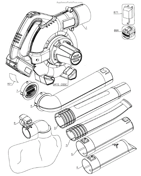 Parts for Black & Decker LSWV36 TYPE 1: Blower Assy Parts