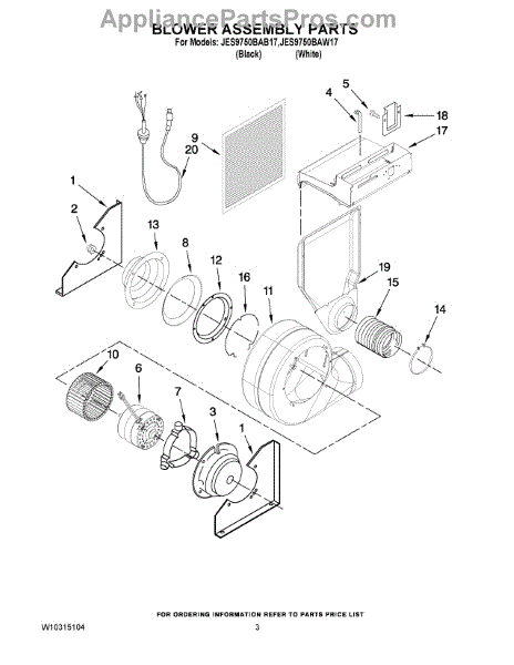 Parts for Maytag JES9750BAW17: 03 - Blower Assembly Parts