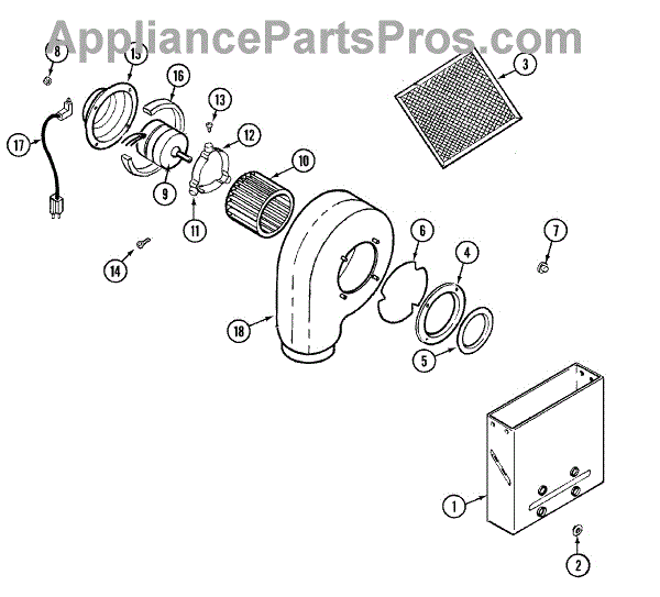 This blower wheel mounts on the drive motor and pushes air through the dryer drum and out the exhaust. Replacing a worn wheel restores proper airflow for consistent drying and helps prevent overheating and nuisance shutdowns. What it does: