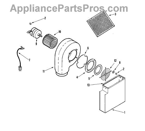 This blower wheel mounts on the drive motor and pushes air through the dryer drum and out the exhaust. Replacing a worn wheel restores proper airflow for consistent drying and helps prevent overheating and nuisance shutdowns. What it does: