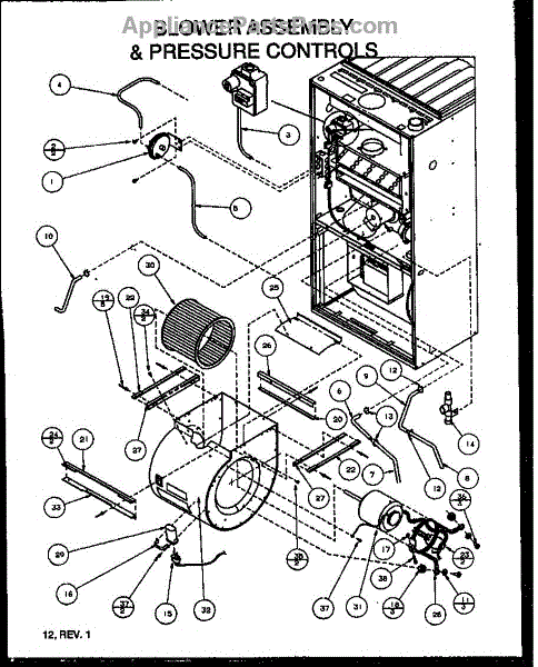 Parts for Amana GUD115C50A/P1164506F: Blower Assembly & Pressure Controls Parts
