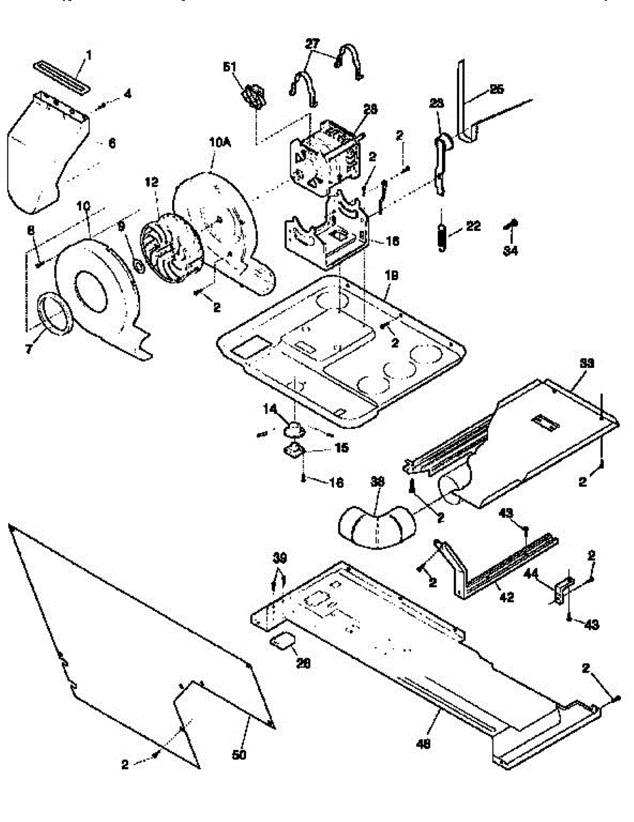 The blower housing assembly encloses the blower wheel and channels air through the unit's coils. Replacing a cracked or warped housing helps restore smooth airflow and reduce blower noise caused by rubbing or misalignment.