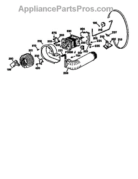 Parts for Ge DBLR333T0WW: Blower And Drive Assembly Parts