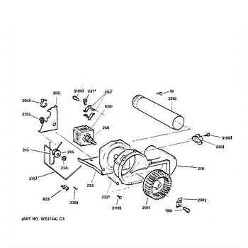 The Blower Wheel is an OEM replacement part for GE dryers. It has a role in the air circulation within the dryer, aiding in the even and efficient drying of clothes. The blower wheel, connected to the motor, helps in expelling the moist air out of the dryer through the exhaust vent during the drying cycle. Causes of a malfunctioning blower wheel are typically wear and tear from regular use, the accumulation of lint or debris, or damage to the wheel’s fins or central hub, which can impact its rotation and air circulation capability. Symptoms of a bad Blower Wheel include:
