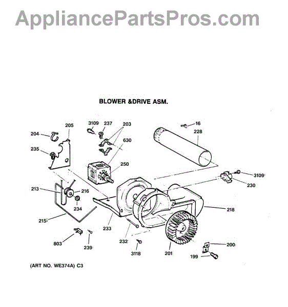 The Blower Wheel is an OEM replacement part for GE dryers. It has a role in the air circulation within the dryer, aiding in the even and efficient drying of clothes. The blower wheel, connected to the motor, helps in expelling the moist air out of the dryer through the exhaust vent during the drying cycle. Causes of a malfunctioning blower wheel are typically wear and tear from regular use, the accumulation of lint or debris, or damage to the wheel’s fins or central hub, which can impact its rotation and air circulation capability. Symptoms of a bad Blower Wheel include: