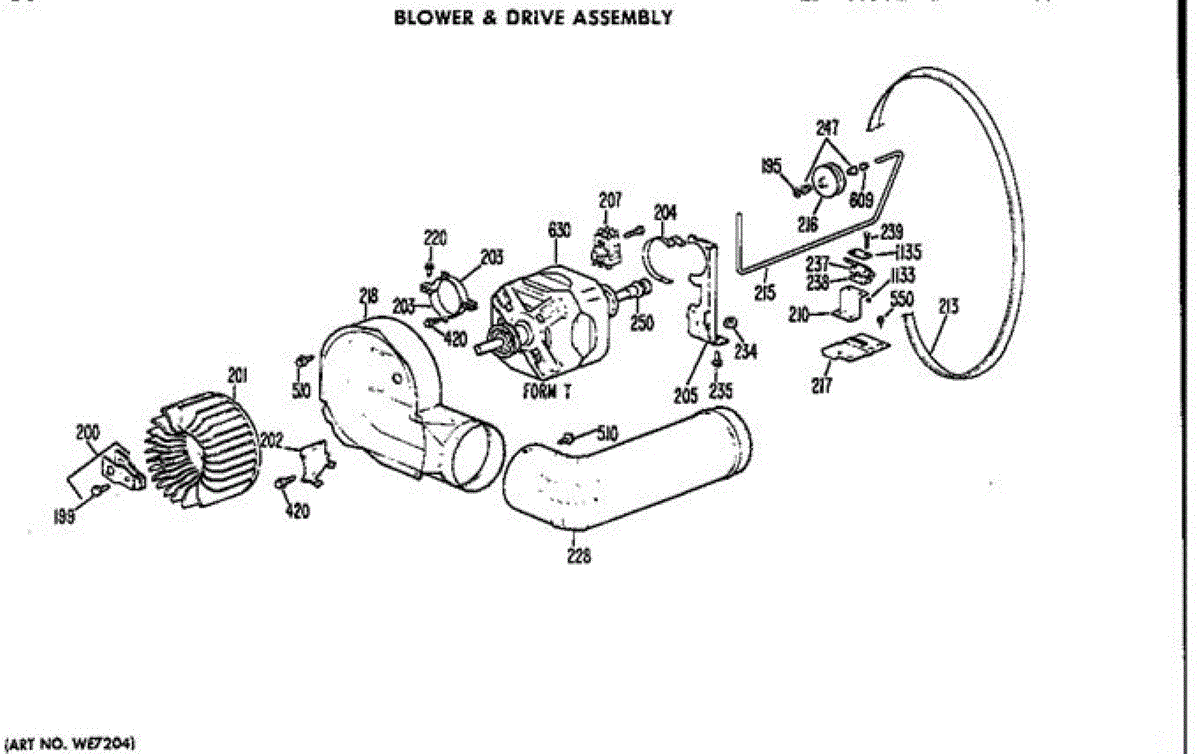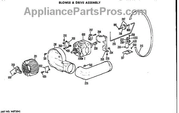 Parts for Ge DDC4498AEL: Blower And Drive Assembly Parts