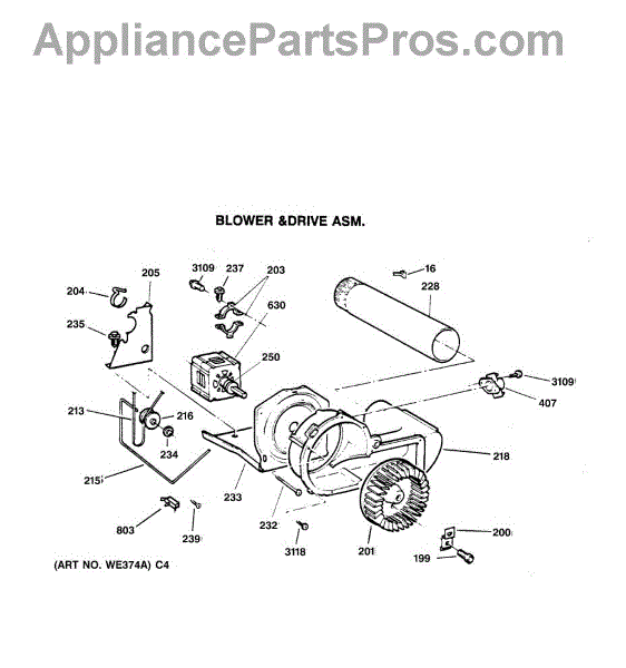 The Blower Wheel is an OEM replacement part for GE dryers. It has a role in the air circulation within the dryer, aiding in the even and efficient drying of clothes. The blower wheel, connected to the motor, helps in expelling the moist air out of the dryer through the exhaust vent during the drying cycle. Causes of a malfunctioning blower wheel are typically wear and tear from regular use, the accumulation of lint or debris, or damage to the wheel’s fins or central hub, which can impact its rotation and air circulation capability. Symptoms of a bad Blower Wheel include: