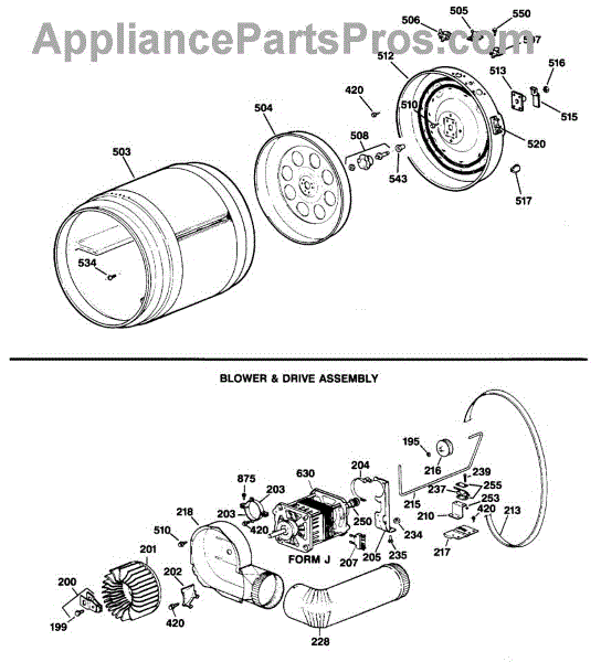 Parts for Ge DDE7100SBLAA: 04 - Blower & Drive Assembly Parts