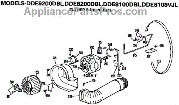 Parts for Ge DDE8108VJL: Blower And Drive Assembly Parts