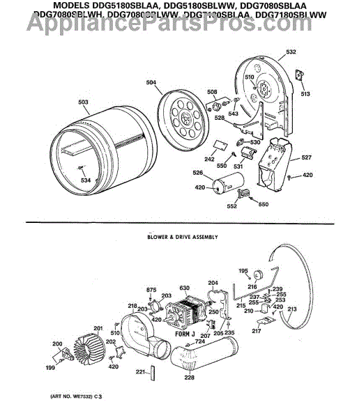 The Blower Wheel is an OEM replacement part for GE dryers. It has a role in the air circulation within the dryer, aiding in the even and efficient drying of clothes. The blower wheel, connected to the motor, helps in expelling the moist air out of the dryer through the exhaust vent during the drying cycle. Causes of a malfunctioning blower wheel are typically wear and tear from regular use, the accumulation of lint or debris, or damage to the wheel’s fins or central hub, which can impact its rotation and air circulation capability. Symptoms of a bad Blower Wheel include: