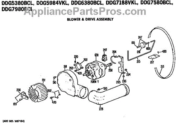 Parts for Ge DDG7188VKL: Blower And Drive Assembly Parts