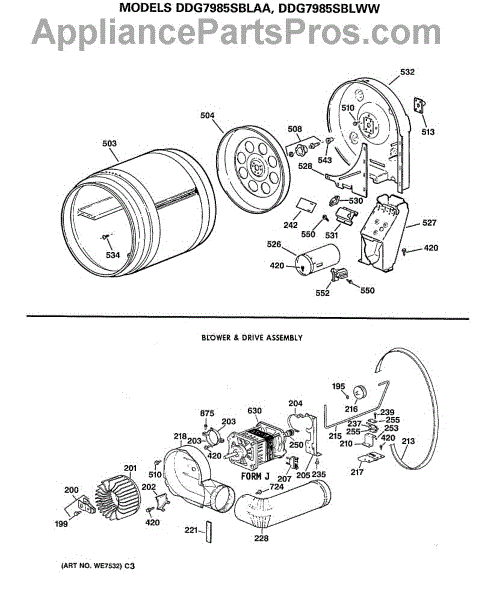 The Blower Wheel is an OEM replacement part for GE dryers. It has a role in the air circulation within the dryer, aiding in the even and efficient drying of clothes. The blower wheel, connected to the motor, helps in expelling the moist air out of the dryer through the exhaust vent during the drying cycle. Causes of a malfunctioning blower wheel are typically wear and tear from regular use, the accumulation of lint or debris, or damage to the wheel’s fins or central hub, which can impact its rotation and air circulation capability. Symptoms of a bad Blower Wheel include: