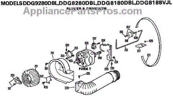 Parts for Ge DDG8180DBL: Blower And Drive Assembly Parts