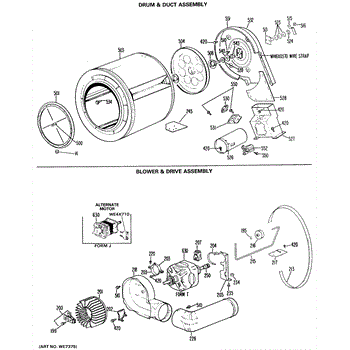 Parts for Ge DRL2455KBL: 03 - Drum & Duct Assembly Parts