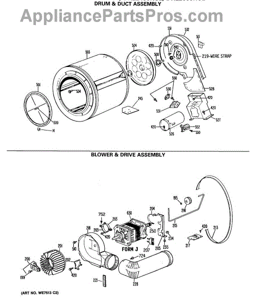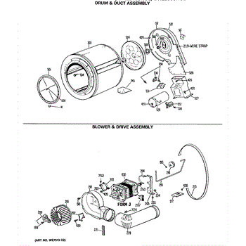 The Blower Wheel is an OEM replacement part for GE dryers. It has a role in the air circulation within the dryer, aiding in the even and efficient drying of clothes. The blower wheel, connected to the motor, helps in expelling the moist air out of the dryer through the exhaust vent during the drying cycle. Causes of a malfunctioning blower wheel are typically wear and tear from regular use, the accumulation of lint or debris, or damage to the wheel’s fins or central hub, which can impact its rotation and air circulation capability. Symptoms of a bad Blower Wheel include: