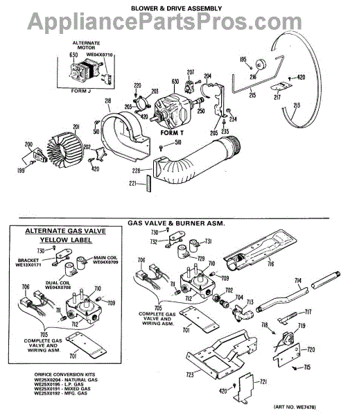 The Blower Wheel is an OEM replacement part for GE dryers. It has a role in the air circulation within the dryer, aiding in the even and efficient drying of clothes. The blower wheel, connected to the motor, helps in expelling the moist air out of the dryer through the exhaust vent during the drying cycle. Causes of a malfunctioning blower wheel are typically wear and tear from regular use, the accumulation of lint or debris, or damage to the wheel’s fins or central hub, which can impact its rotation and air circulation capability. Symptoms of a bad Blower Wheel include: