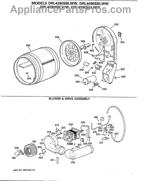Parts for Ge DRL4480SBLWW: 02 - Blower & Drive Assembly Parts