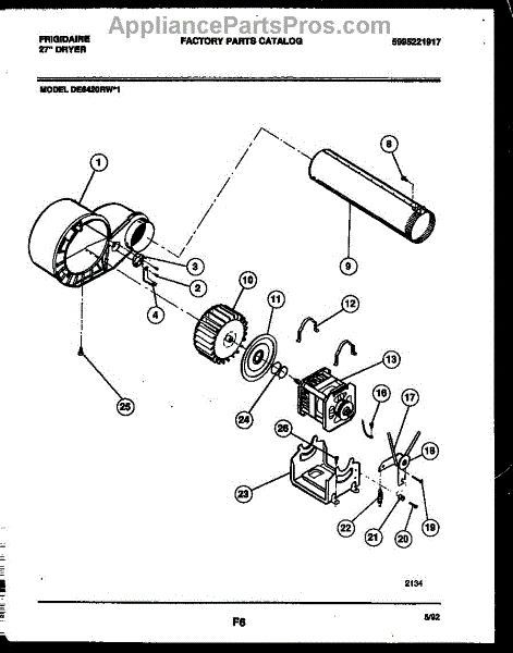 Parts for Frigidaire DE6420RW1: 05 - Blower And Drive Parts