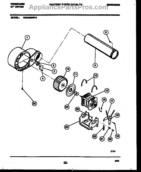 Parts for Frigidaire DE6420RW2: 05 - Blower And Drive Parts