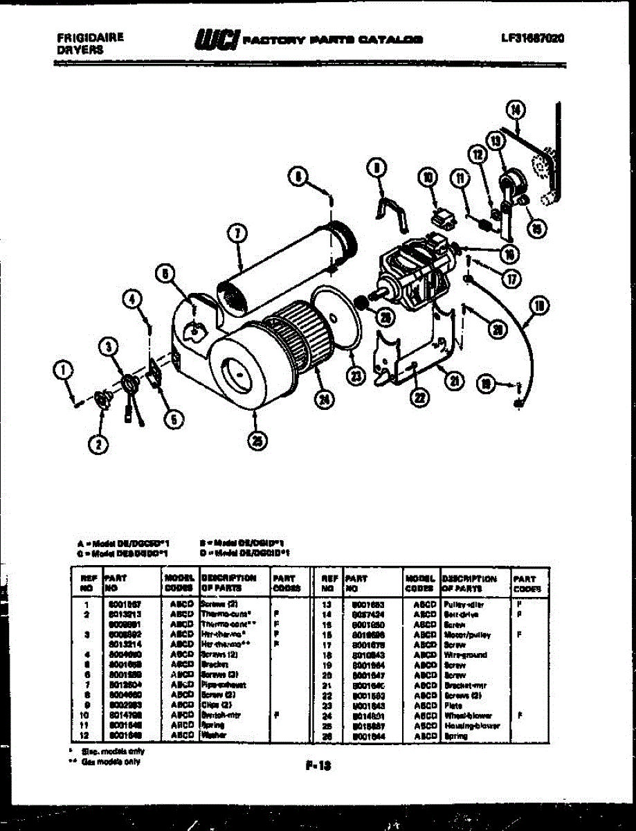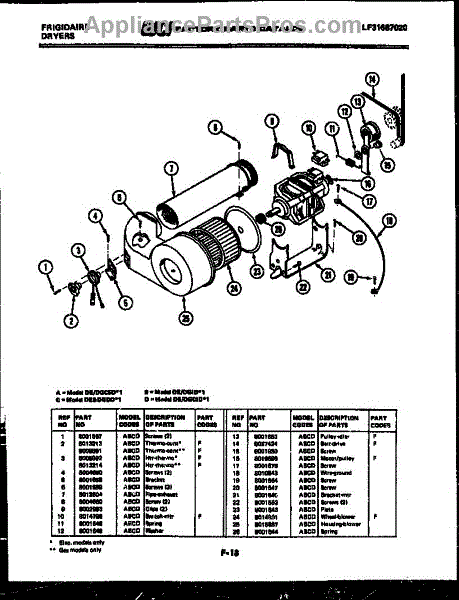 Parts for Frigidaire DEIDW1: 06 - Blower And Drive Parts
