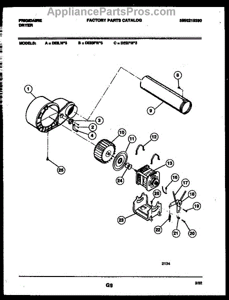 Parts for Frigidaire DESFW3: 05 - Blower And Drive Parts