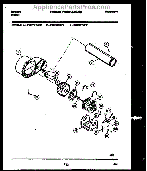 Parts for Frigidaire DG27A7WXFD: 05 - Blower And Drive Parts