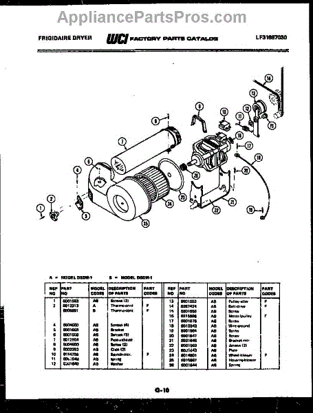 Parts for Frigidaire DGDW1: 05 - Blower And Drive Parts