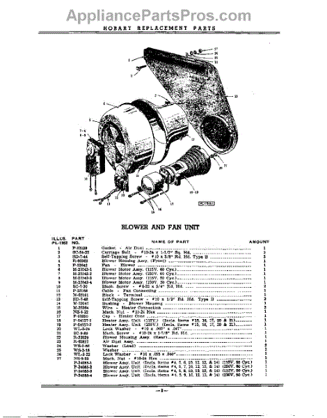 Parts for Kitchenaid KD21: 03 - Blower And Fan Unit Parts