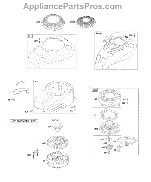 Parts for Briggs & Stratton 12H602-0486-E1: Blower Housind / Shrouds, Flywheel, Rewind Starter Parts