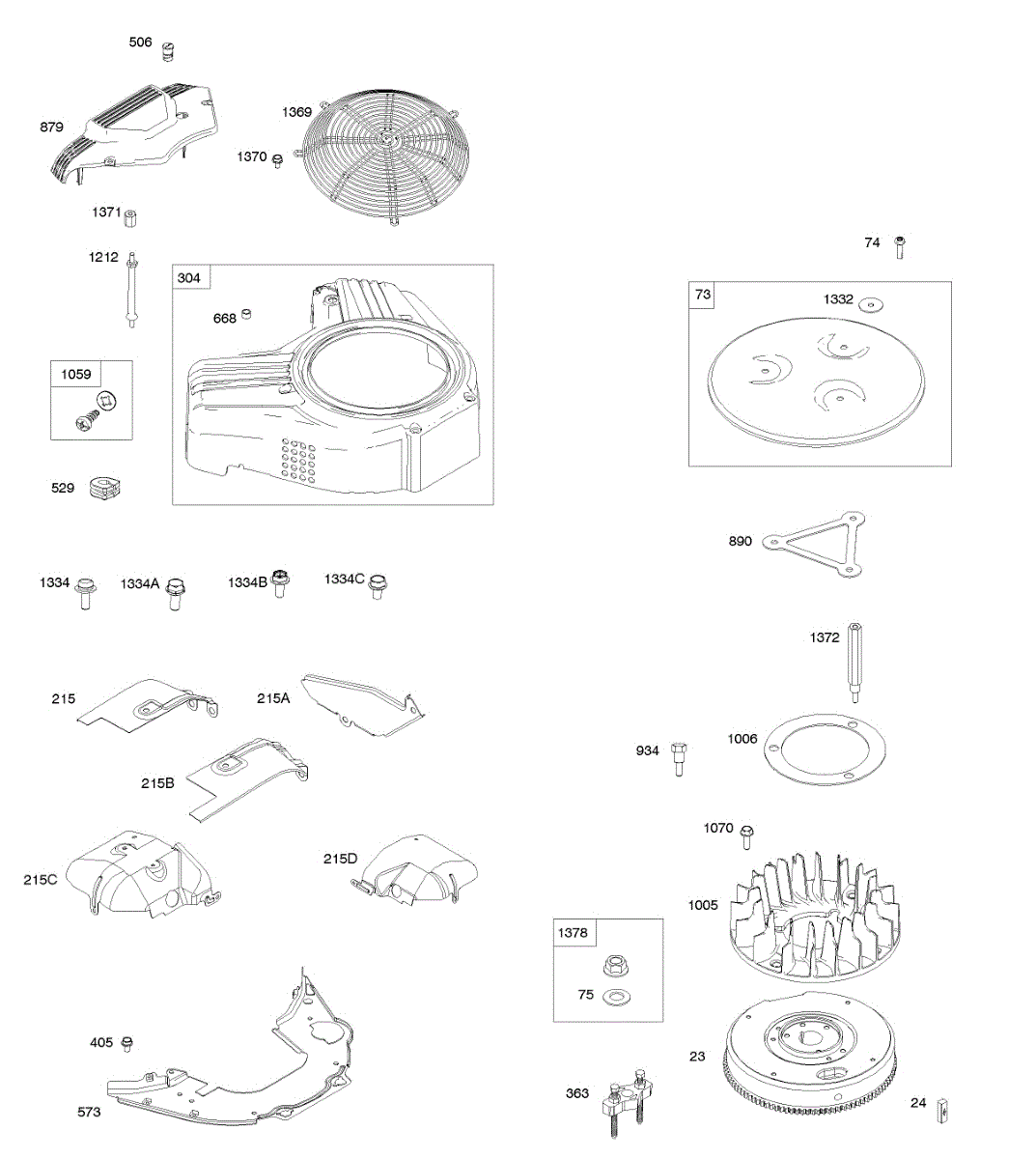 Parts for Briggs & Stratton 613777-2114-B1: Blower Housing, Air Guides, Flywheel Parts