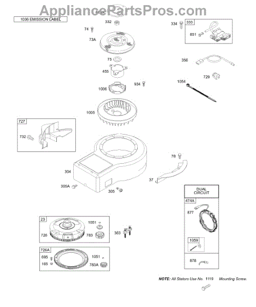 Parts for Briggs & Stratton 28T707-1154-E1: Blower Housing, Alternator, Flywheel, Magneto Parts