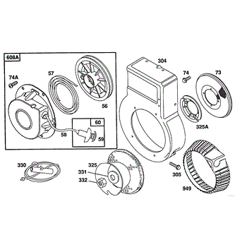 Parts for Briggs & Stratton 080212-2399-01: Blower Housing,Bolted Rewind Parts
