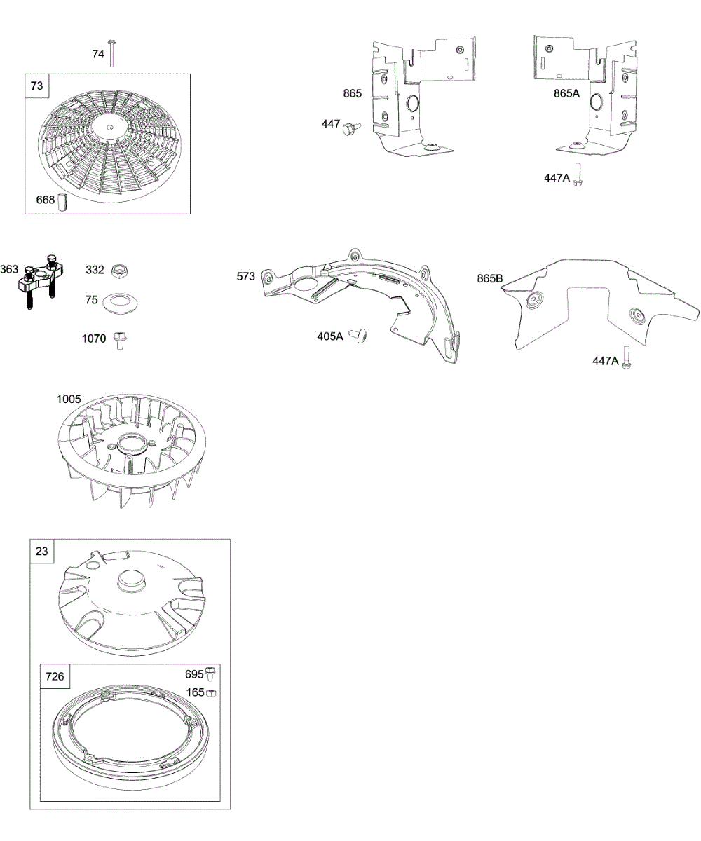 Parts for Briggs & Stratton 4035A7-0409-E1: Blower Housing Brackets, Flywheel Parts