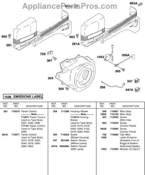 Parts for Briggs & Stratton 235432-0540-B1: Blower Housing, Control Panel, Flywheel Parts