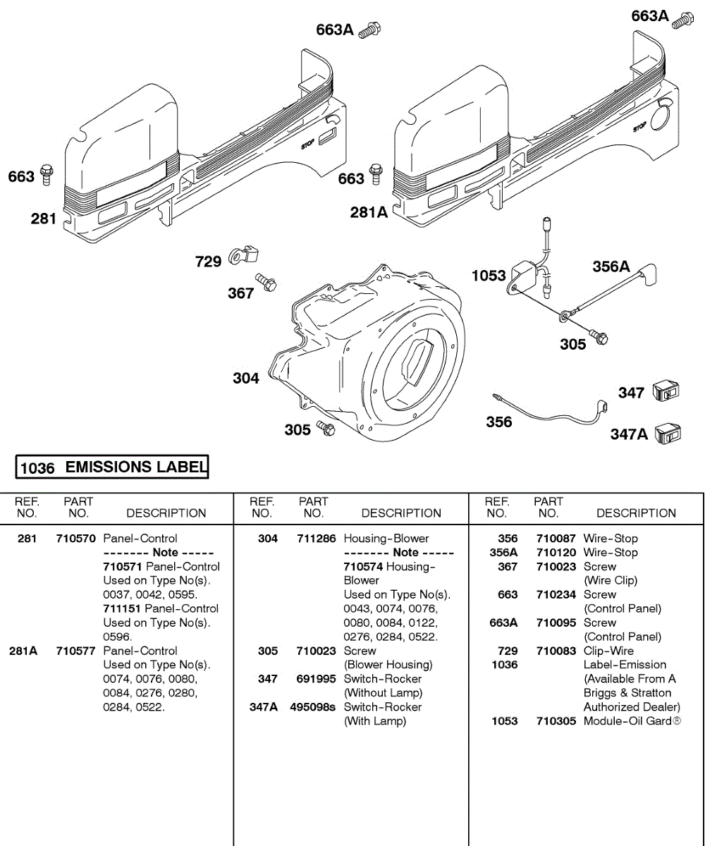 Parts for Briggs & Stratton 235437-0280-E9: Blower Housing, Control Panel, Flywheel Parts
