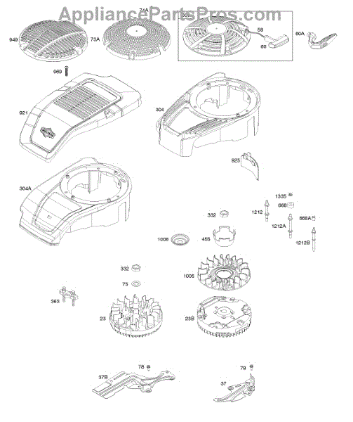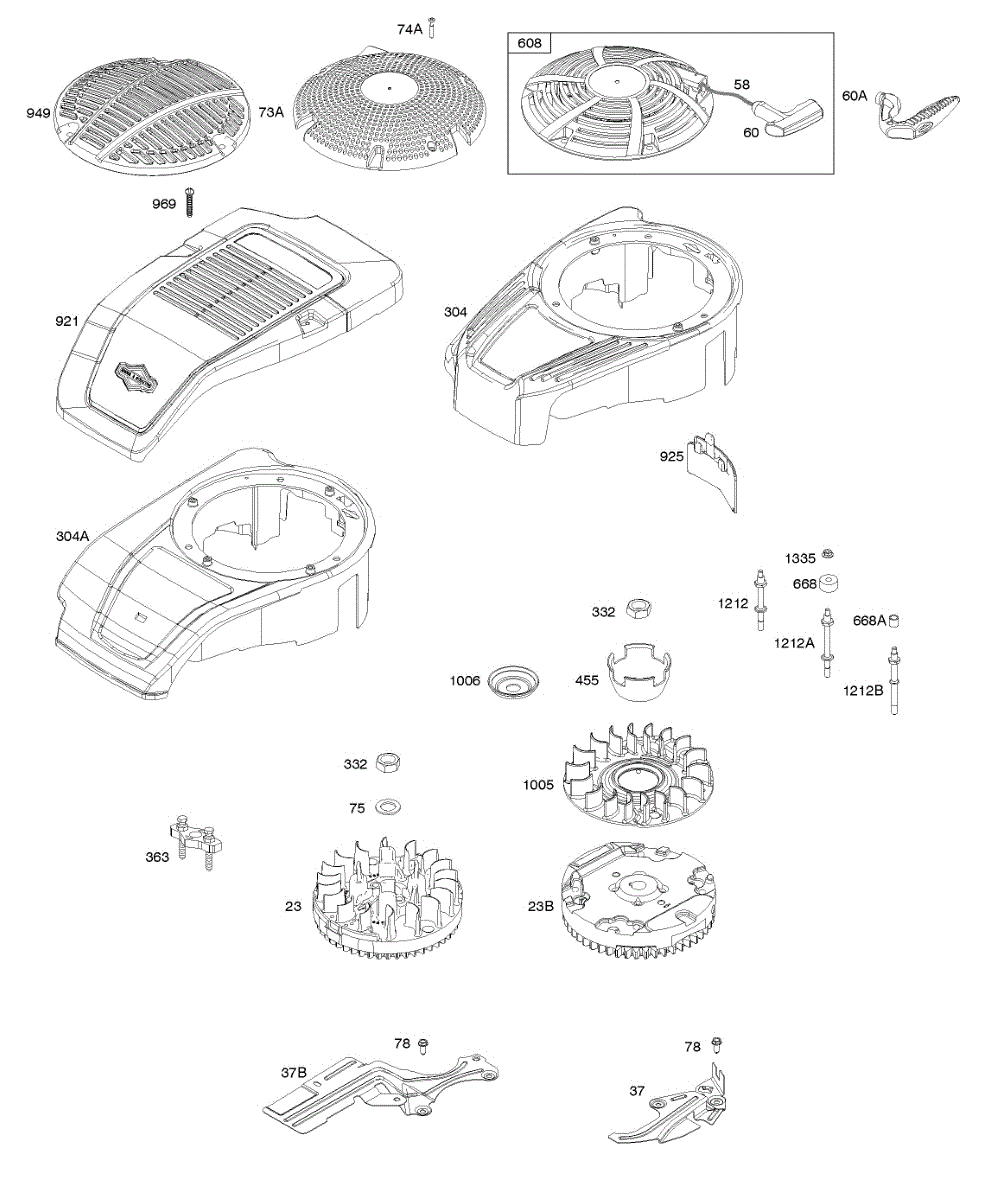 Parts for Briggs & Stratton 122S02-0111-H1: Blower Housing, Cover / Guards, Flywheel, Rewind Starter Parts