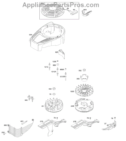 Parts for Briggs & Stratton 12Q902-0164-B1: Blower Housing, Cover / Guards, Flywheel, Rewind Starter Parts