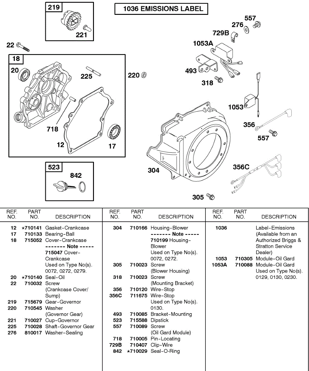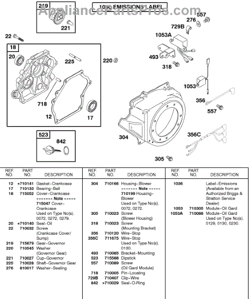 Parts for Briggs & Stratton 085432-0035-02: Blower Housing, Crankcase Cover / Sump Parts