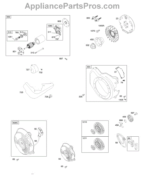 Parts for Briggs & Stratton 122332-4241-B8: Blower Housing, Electric Starter, Flywheel, Rewind Starter Parts